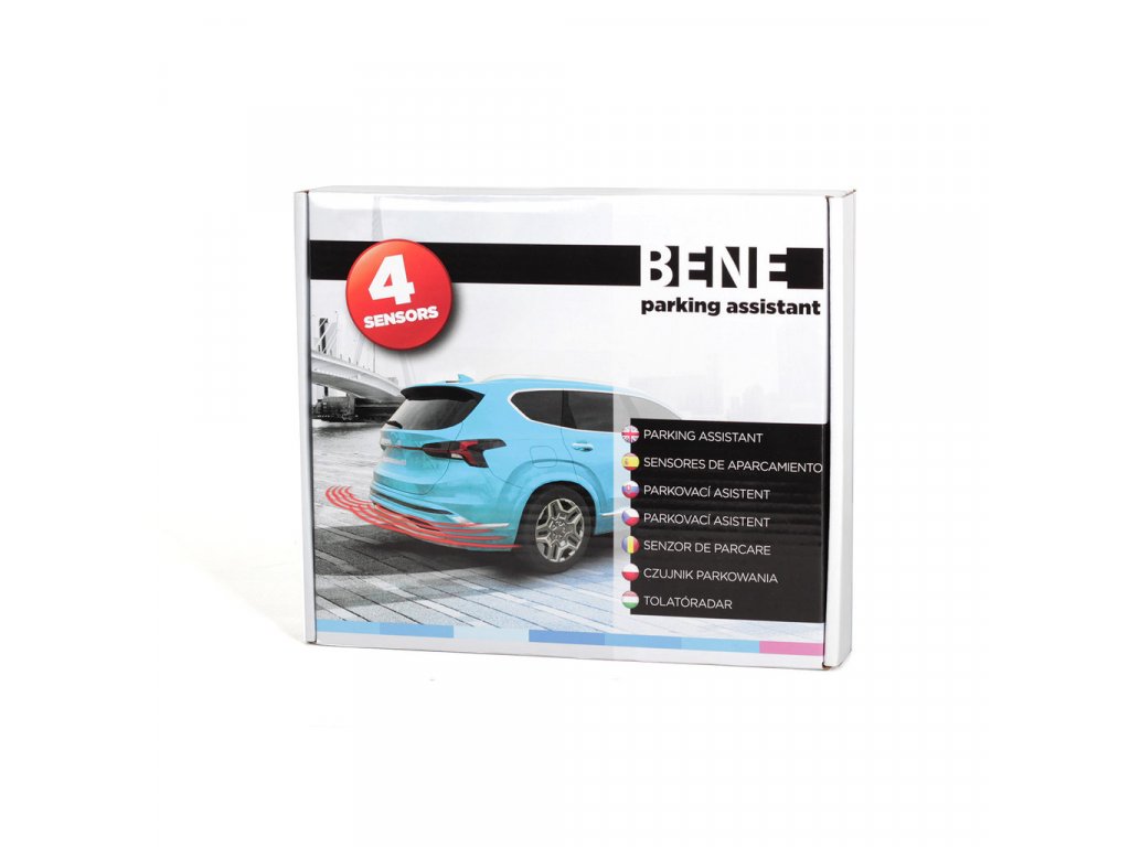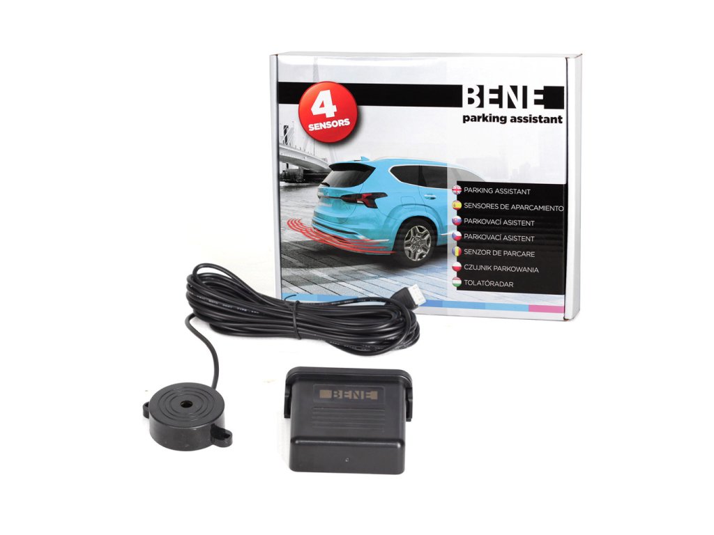 Parkovací asistent BENE 404 se 4 senzory průměru 20mm, určený pro instalaci do zadního nárazníku vozidla. Pomocí akustického signálu upozorní na překážku.